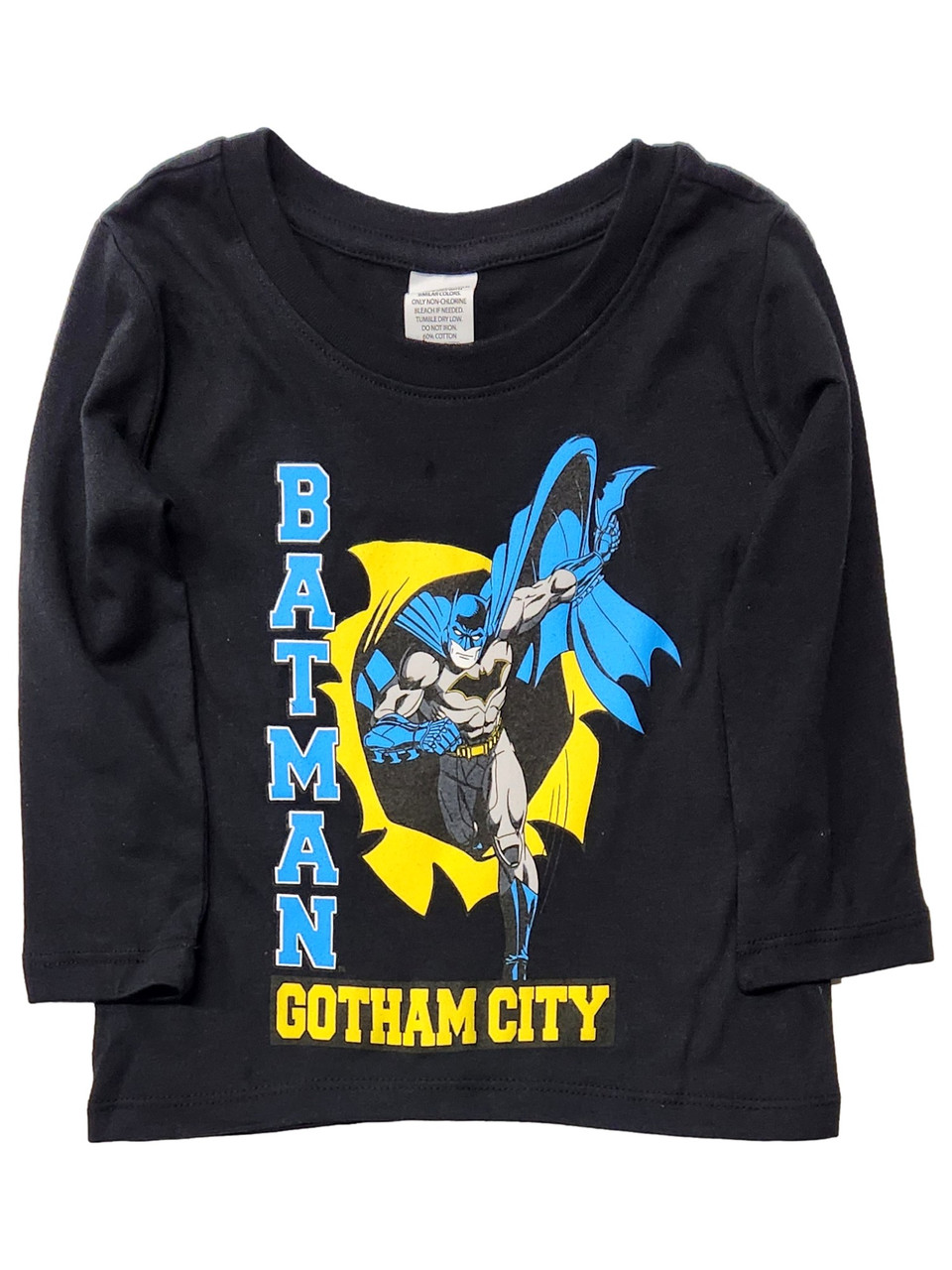 Your little one will look adorable in this fun long sleeved black Batman t-shirt!