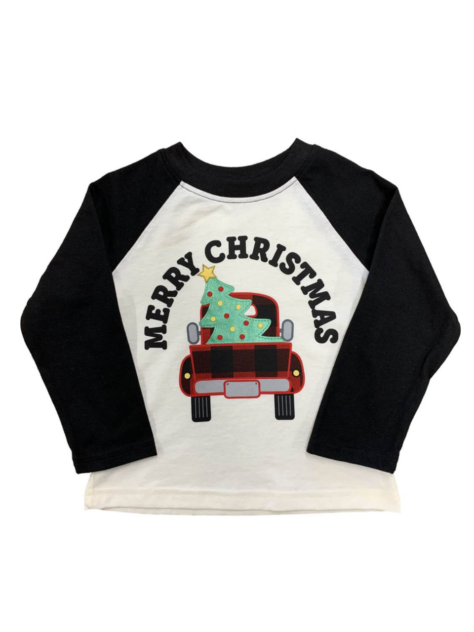 - Infant & Toddler Boys Black & White Merry Christmas Truck Holiday Shirt
