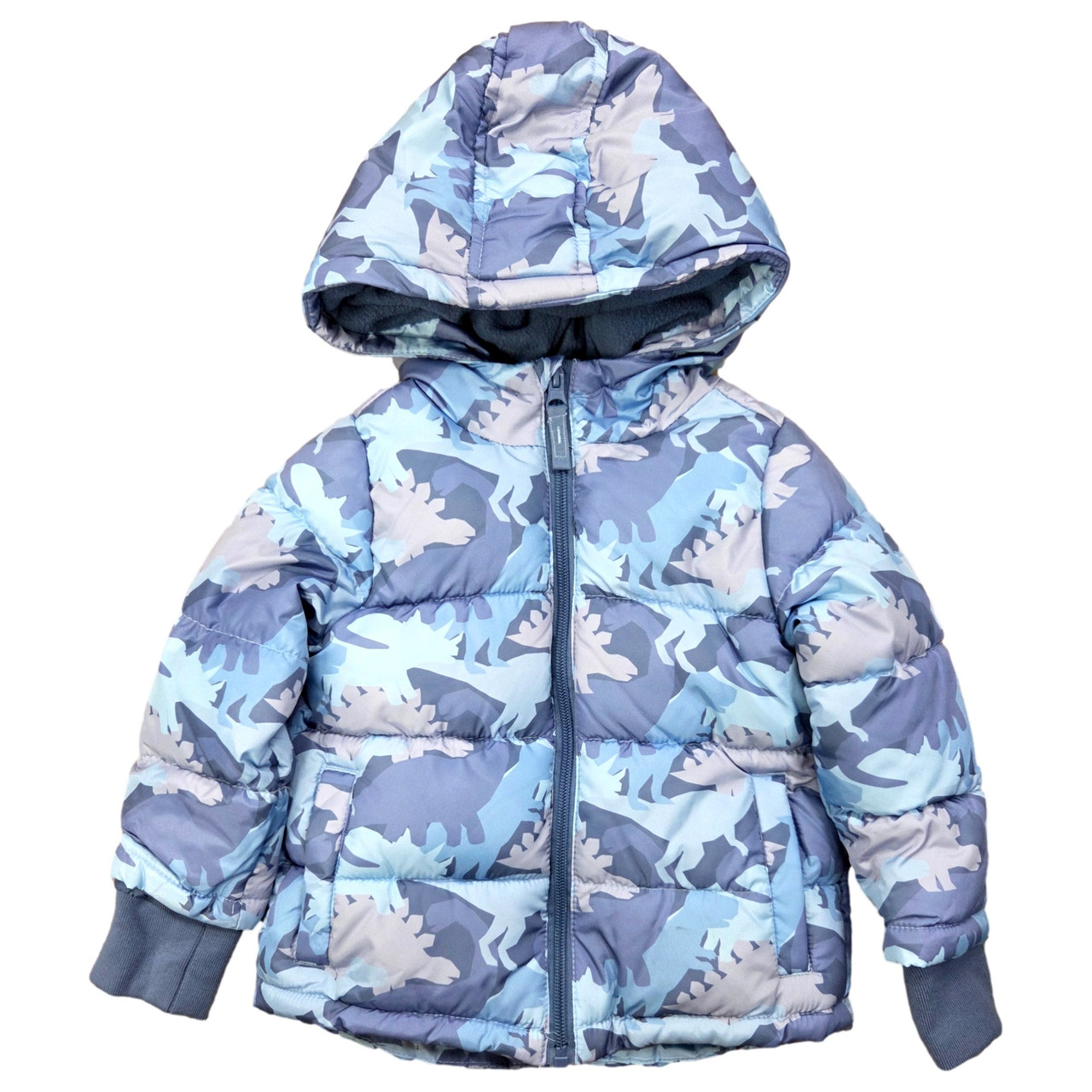 - Infant & Toddler Boys Blue & Gray Dinosaur Puffer Jacket Hoodie Coat