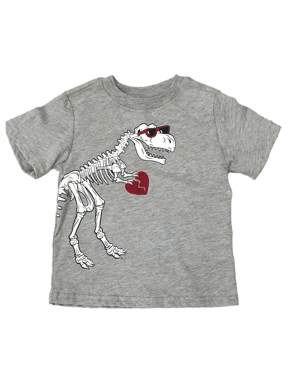 - Infant & Toddler Boys Gray Dinosaur Skeleton Valentines Day Tee Shirt