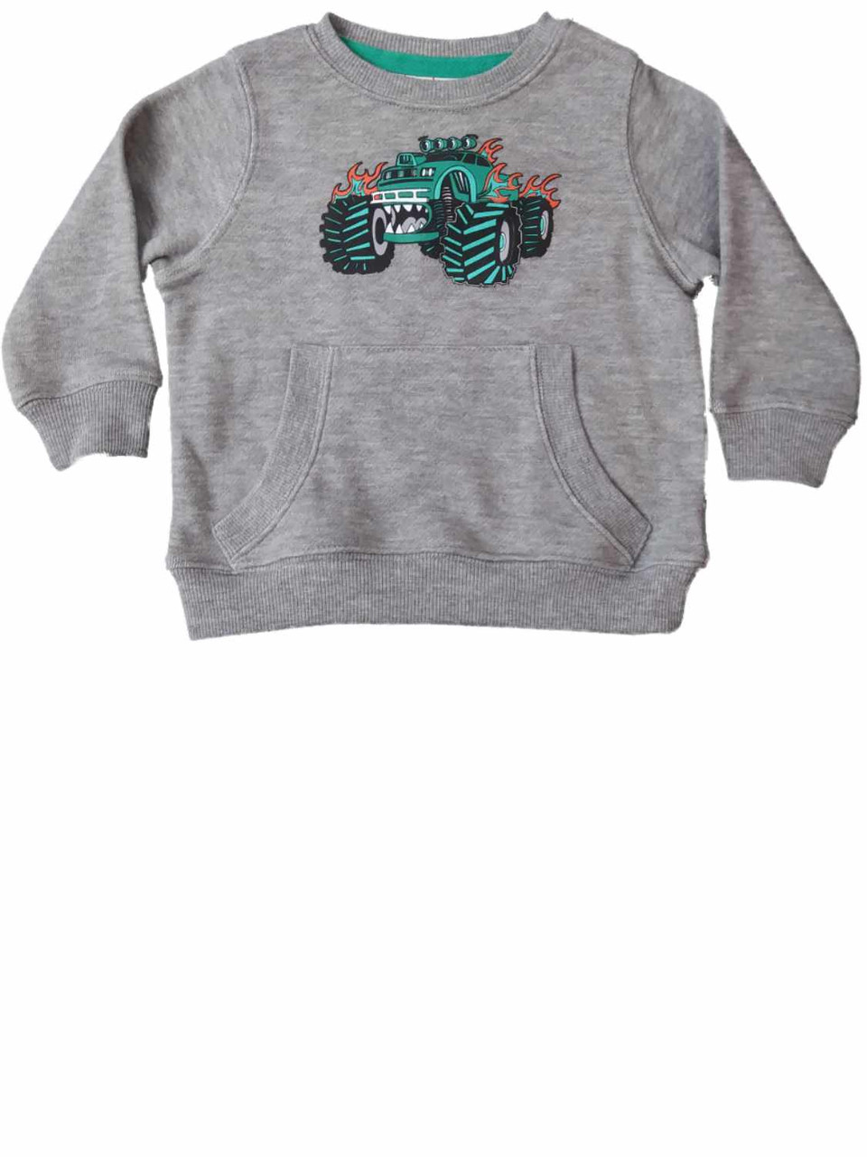 - Infant Boys Gray Flaming Monster Truck Car Pull Over Sweatshirt