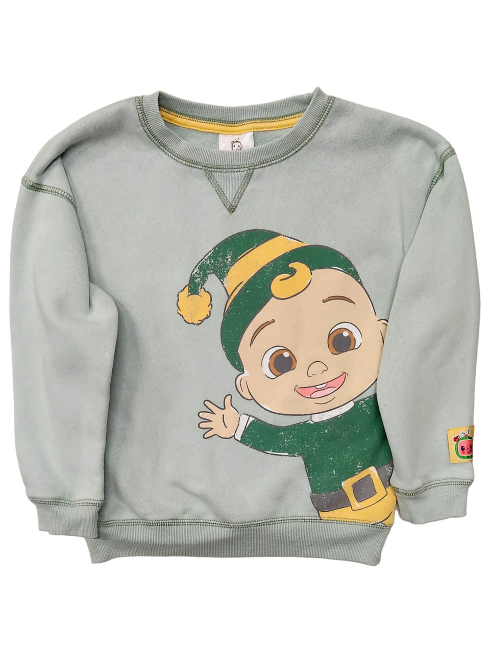 Your little one will look adorable in this fun, retro dyed, green CoComelon Elf Christmas Holiday sweatshirt!