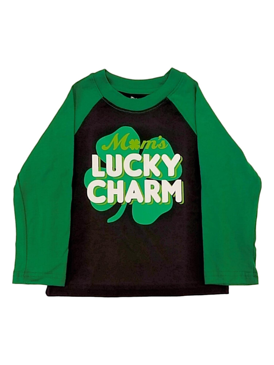 This adorable infant & toddler boy's black & green "Mom's Lucky Charm" St. Patrick's Day long sleeve shirt is sure to be a favorite!