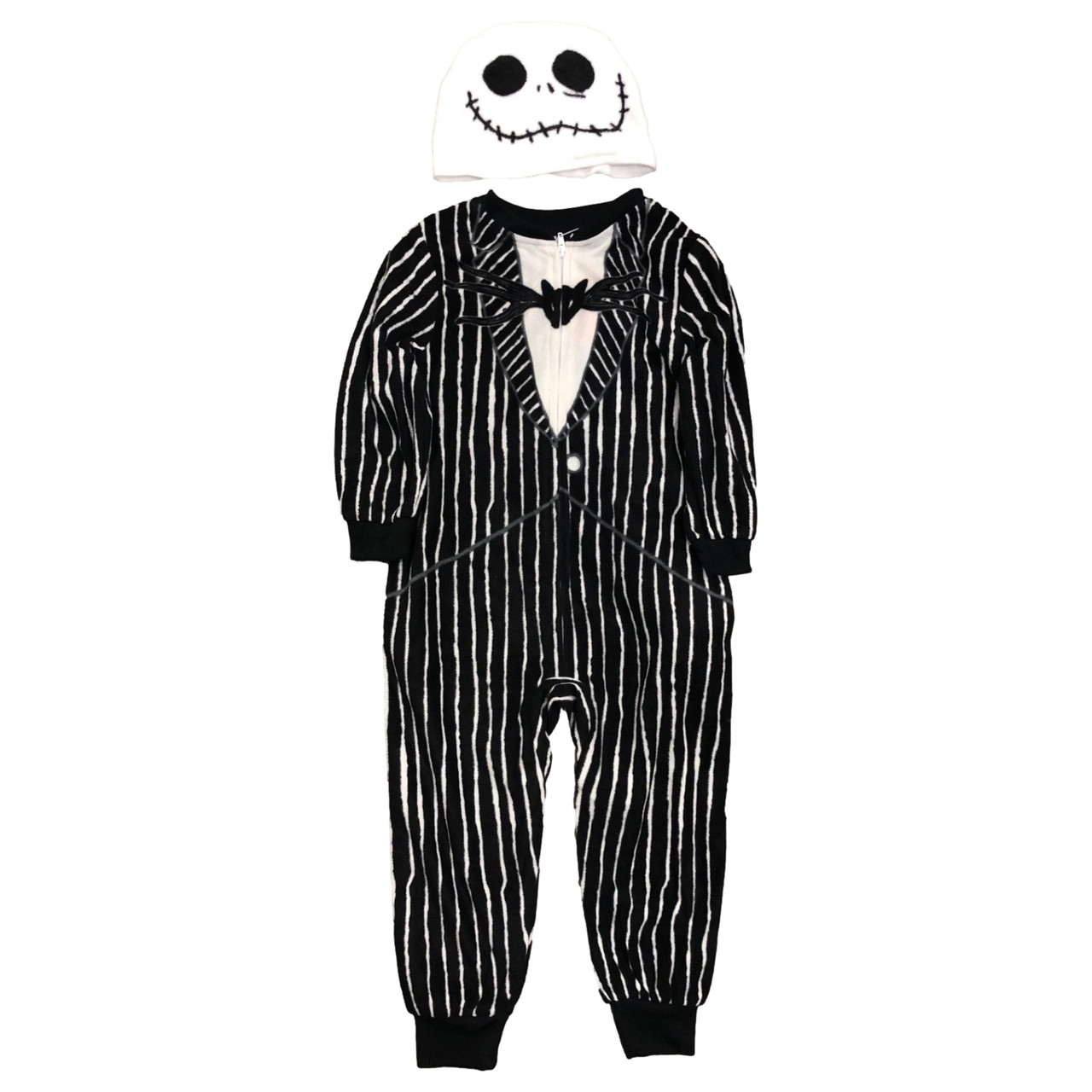 Your little one will look adorable & stay cozy & comfortable at the same time in this fun 2 piece Nightmare Before Christmas "Jack Skellington" themed union suit & hat pajamas set!