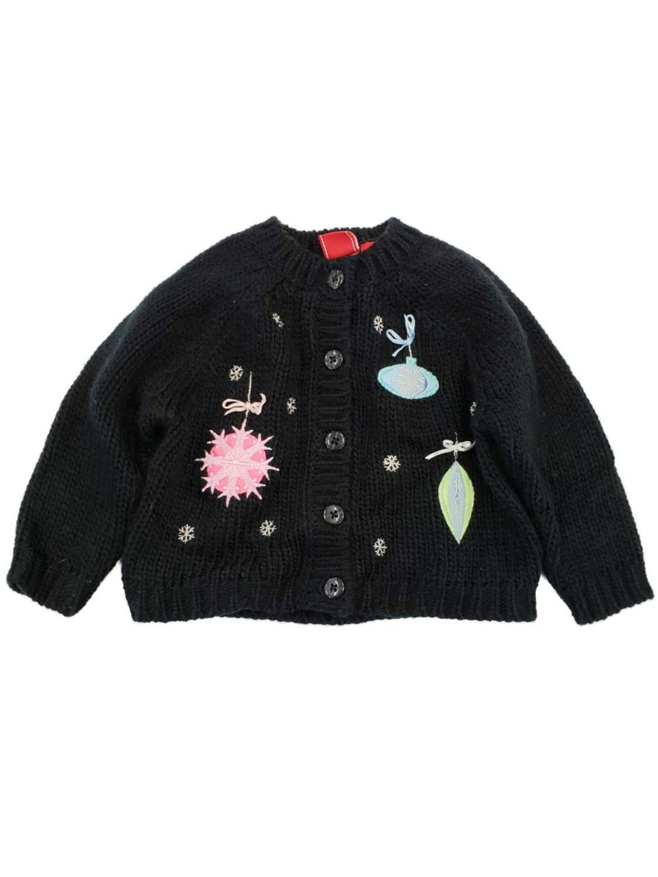 - Infant & Toddler Girls Black Christmas Holiday Button Front Cardigan Sweater
