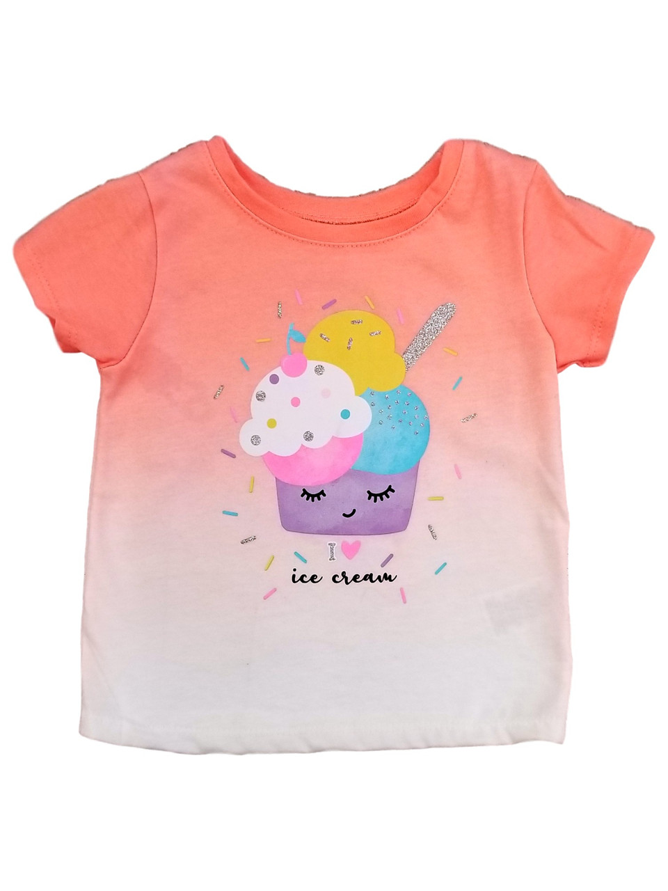 - Infant & Toddler Girls Coral Ice Cream Sprinkles Short Sleeve Tee T-Shirt