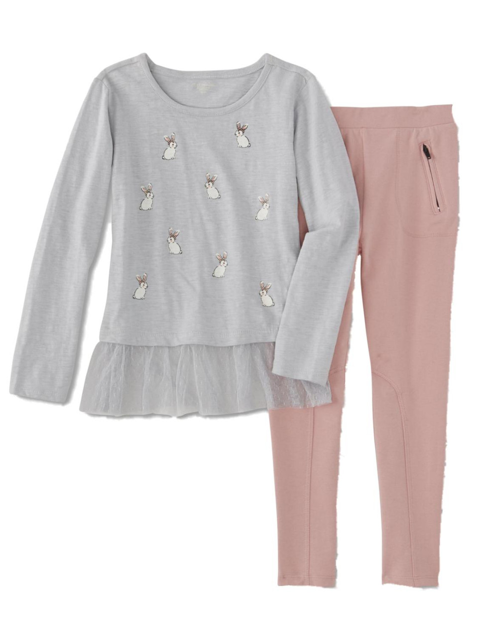 - Infant & Toddler Girls Gray & Pink Bunny Rabbit Baby Outfit Shirt & Leggings