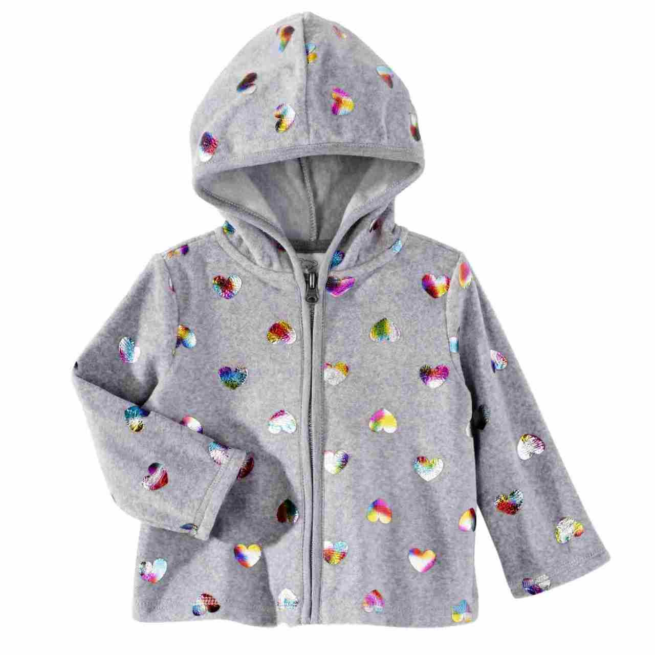 - Infant & Toddler Girls Gray Rainbow Heart Hoodie Zip Front Sweatshirt Jacket