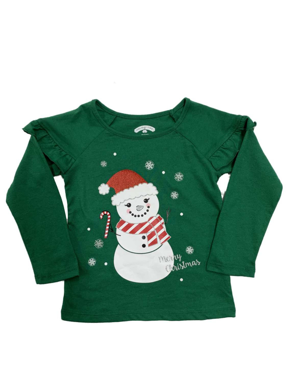 - Infant & Toddler Girls Green Top Snowman Merry Christmas Baby Shirt