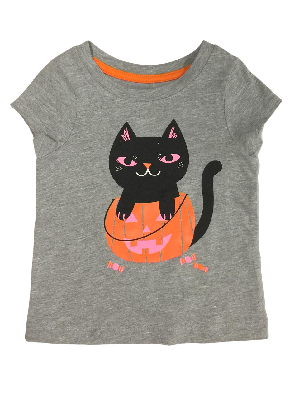 - Infant Toddler Girls Kitty Cat In Pumpkin Halloween Short Sleeve Gray Shirt