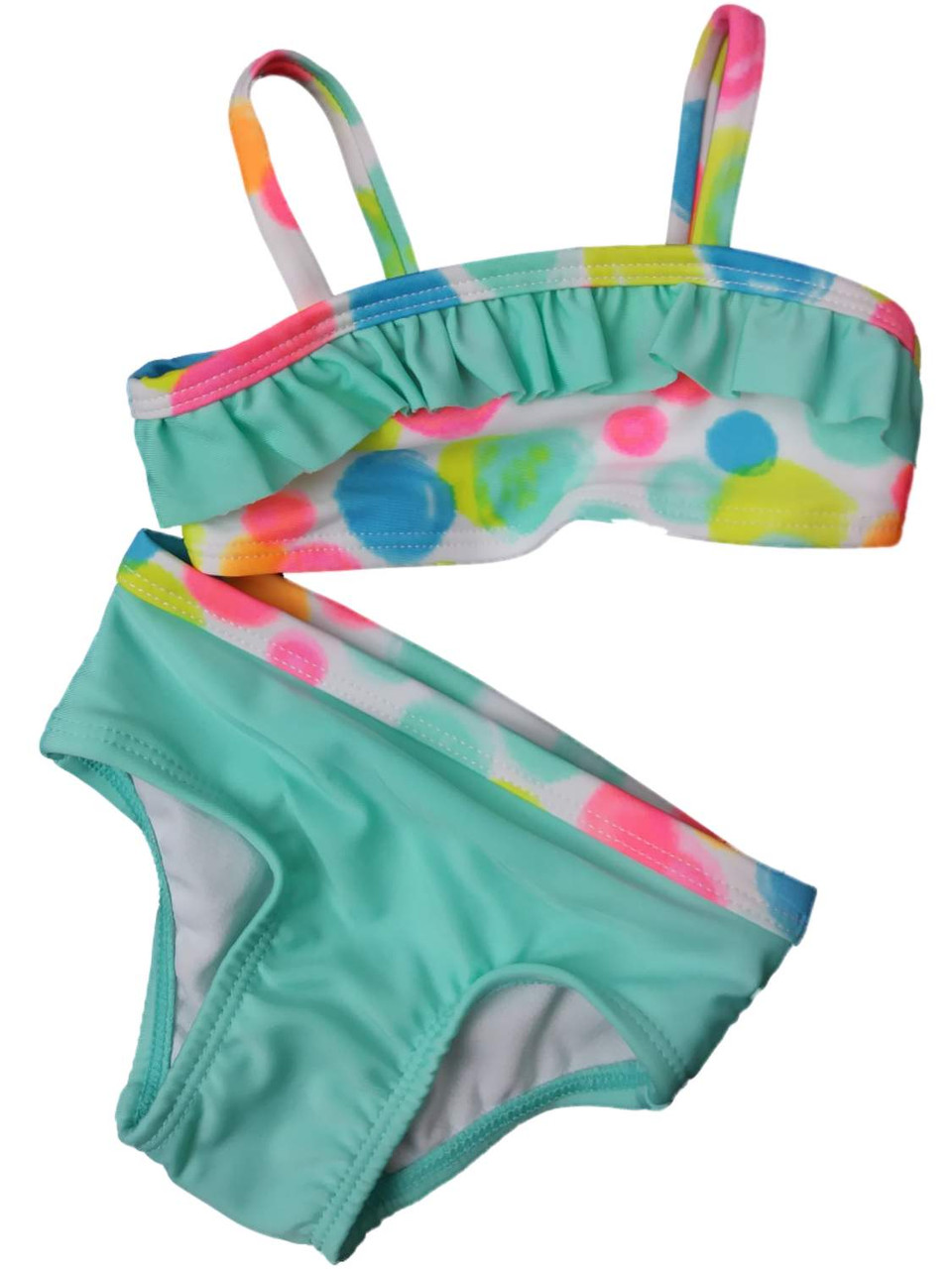 - Infant Girls Neon Rainbow Polka Dot Ruffled 2-Piece Swimming Suit