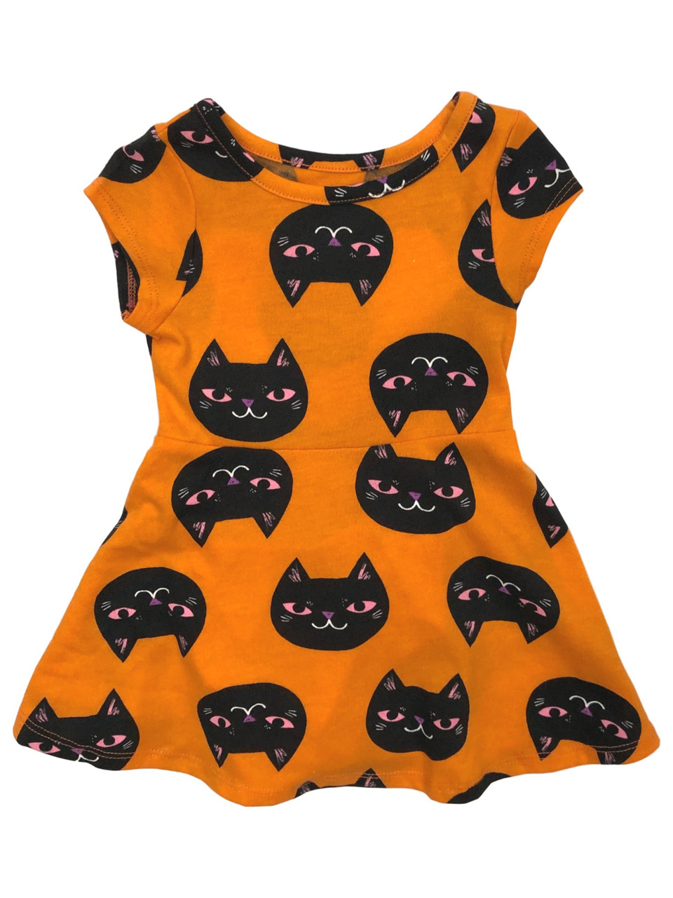 - Infant & Toddler Girls Orange Black Cat Halloween Baby Dress