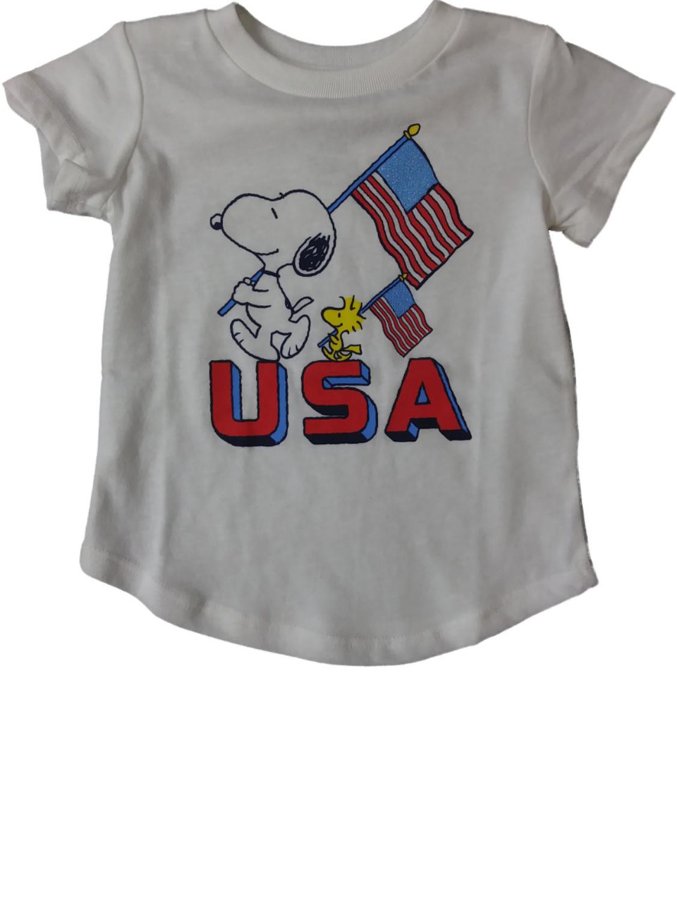 - Infant Girls Peanuts Snoopy Dog & Woodstock USA Patriotic Flag Tee Shirt