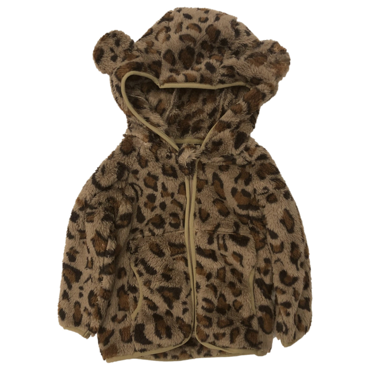 - Infant & Toddler Girls PlushBrown Leopard Print Hoodie Jacket Zip Front