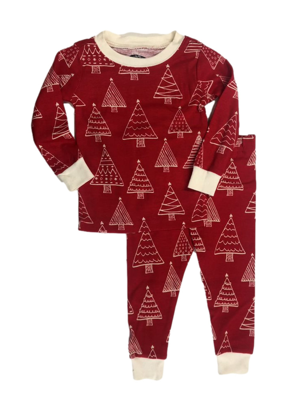 - Infant & Toddler Girls & Red White Christmas Tree Snug Fit Cotton Pajamas