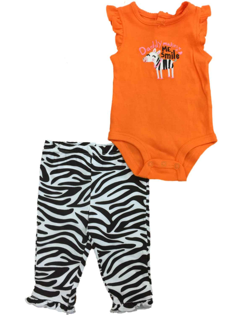 - Infant Girls Orange Daddy Makes Me Smile Zebra Bodysuit & Animal Print Outfit