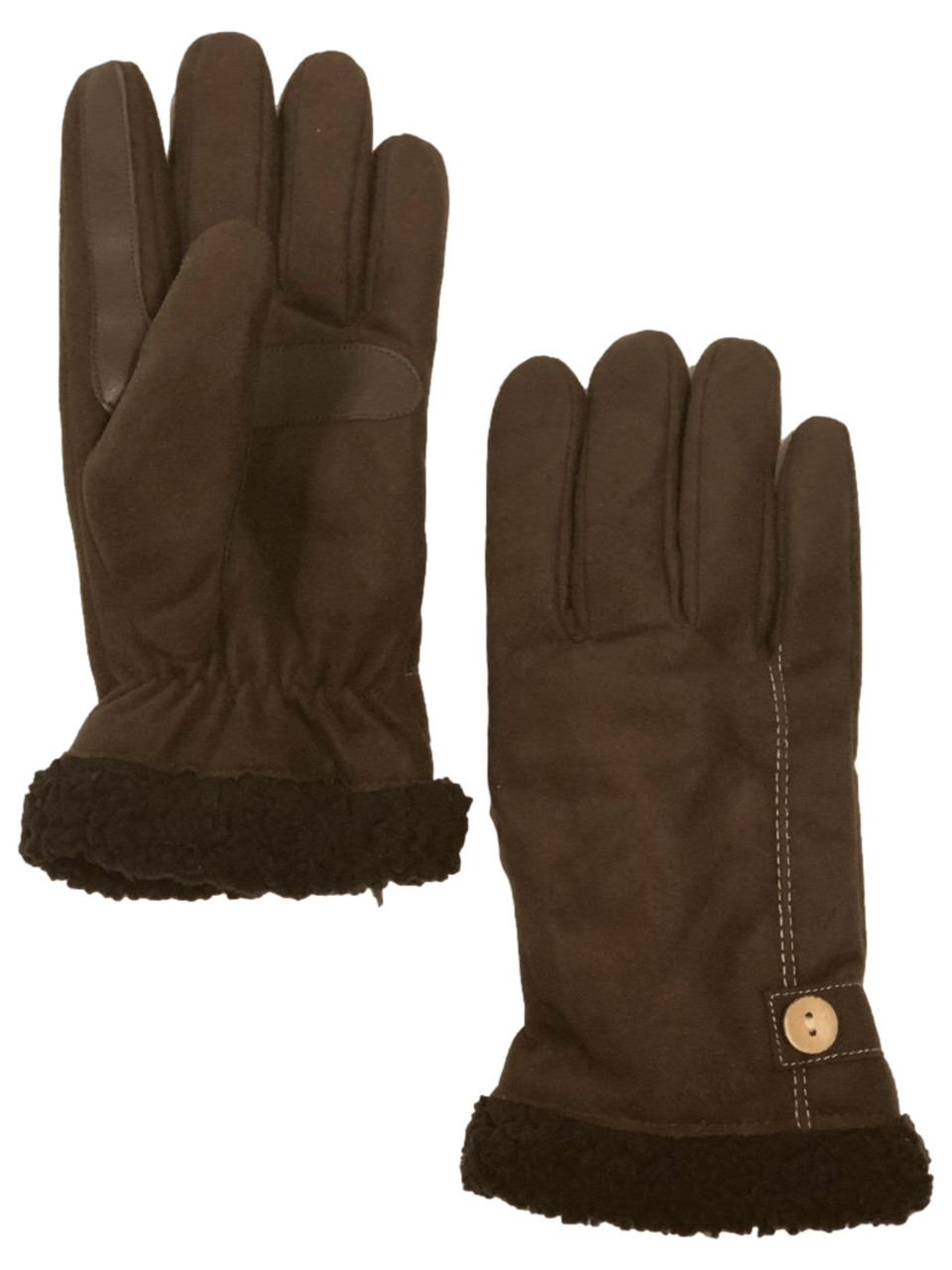 You will love the sleek look & cozy feel of these brown Sherpa lined Isotoner Smartouch touchscreen gloves with SmartDri technology that makes the water roll off of them!