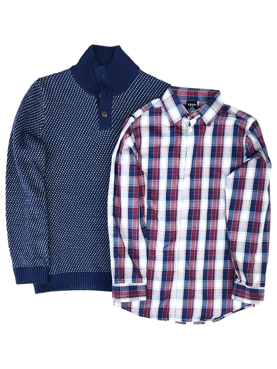 - Izod Boys Blue & White Sweater & Plaid Button Down Shirt Set Sweater
