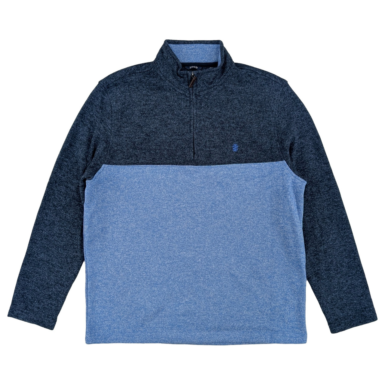 - IZOD Mens Blue Colorblock Long Sleeve Fleece Quarter Zip Sweater