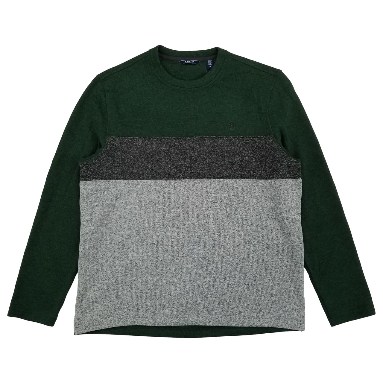 - IZOD Mens Dark Ivy Heather Colorblock Long Sleeve Fleece Crewneck Sweater Large