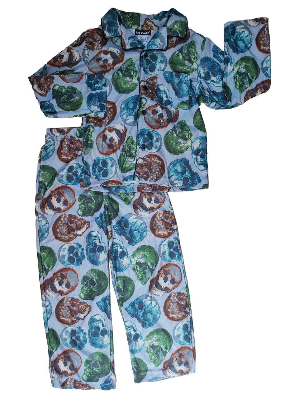 - Joe Boxer Boys Colorful Skull Print Flannel 2 Piece Pajama PJ Set
