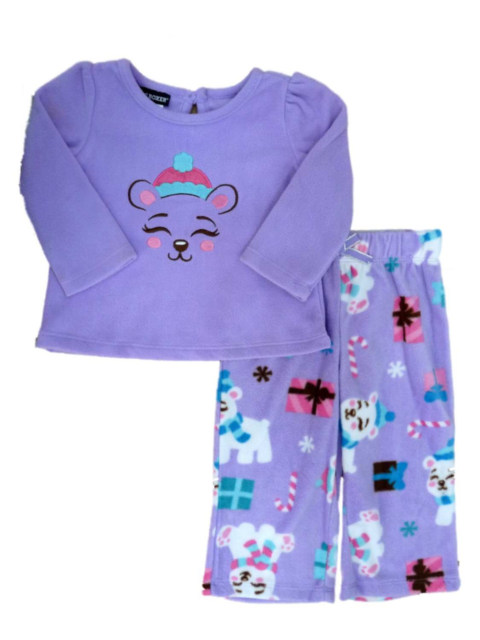 - Joe Boxer Infant Toddler Girls Bear Fleece Sleepwear Set Purple Pajamas PJs