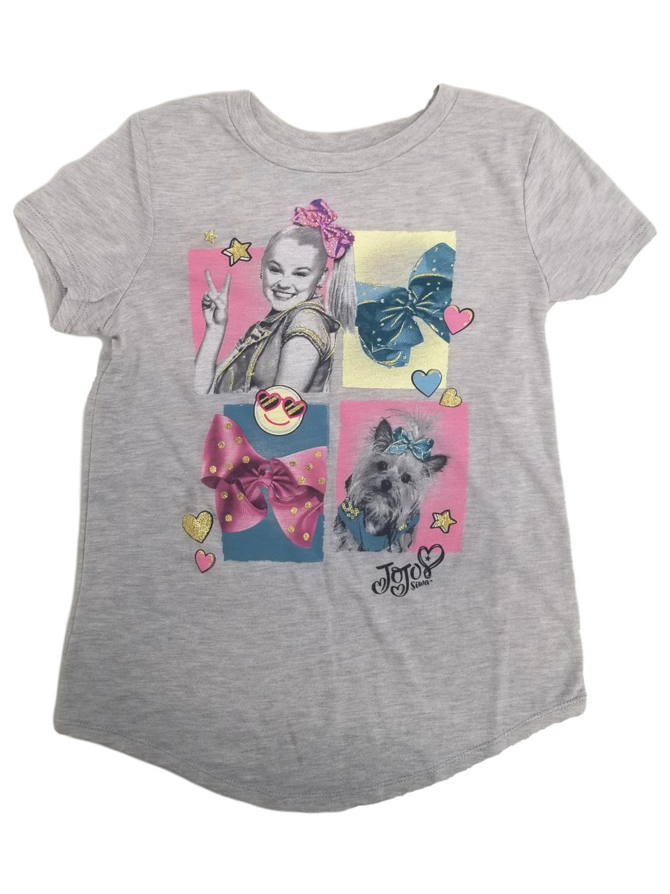 - Jojo Siwa Girls Gray Short Sleeve Emoji Dog & Bow T-Shirt Tee Shirt