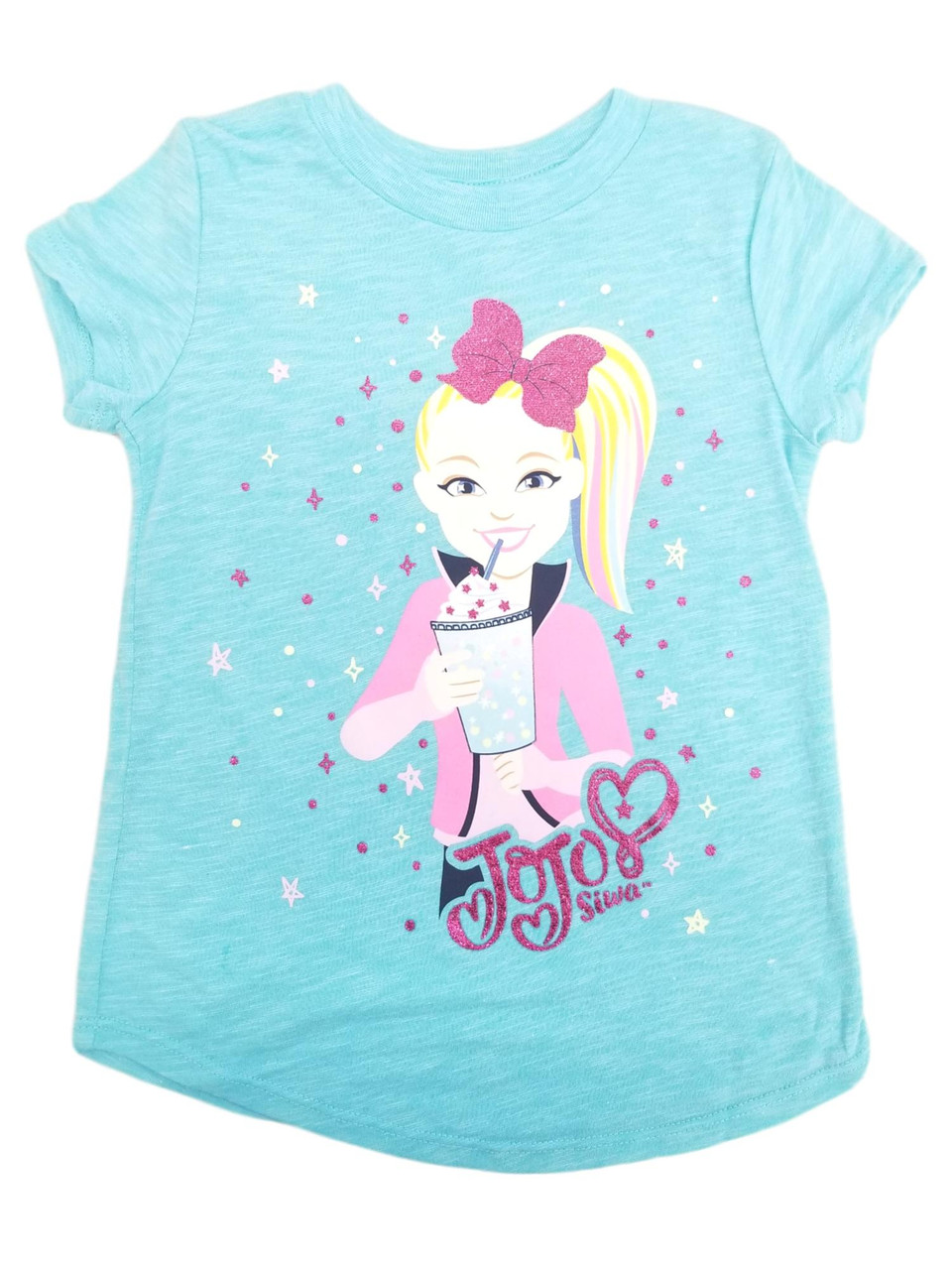 - Jojo Siwa Girls Short Sleeve Blue Milkshake & Bow T-Shirt Tee Shirt