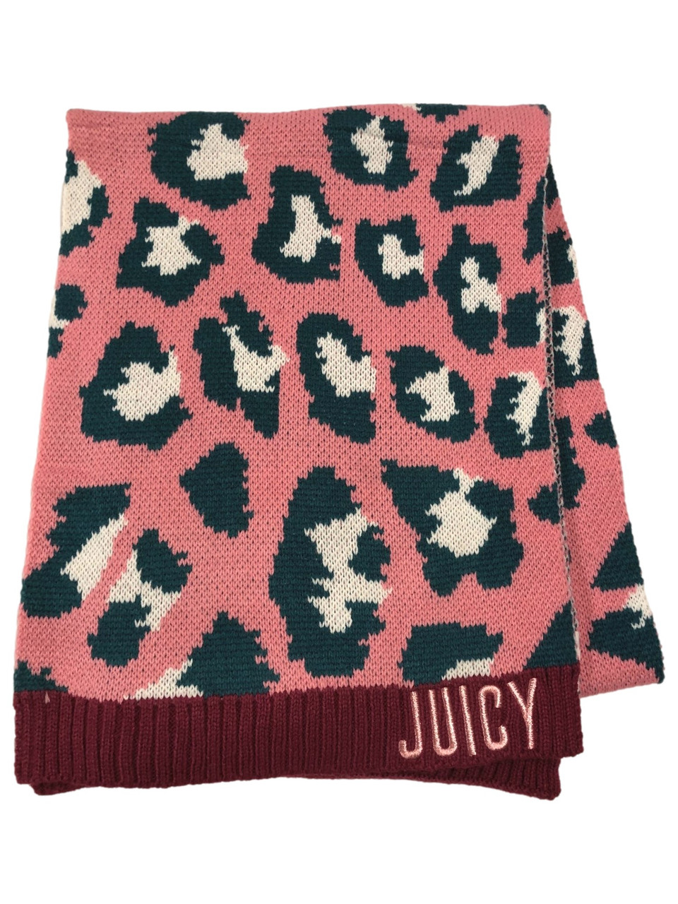 You will love wearing this adorable 64 by 12 inch Juicy brand pink & blue leopard print scarf on those cold fall and winter days!