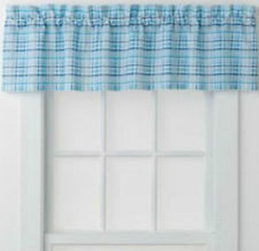 - Jumping Beans Aviator Blue Plaid Window Valance Curtain Topper