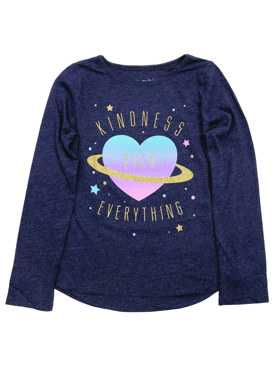 - Jumping Beans Girls Long Navy Sparkle Kindness Over Everything T-Shirt Shirt