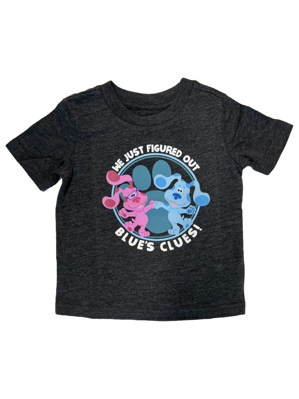 This infant boys charcoal gray Blue's Clues "We just figured out Blue's clues" short sleeve t-shirt is sure to be a favorite!