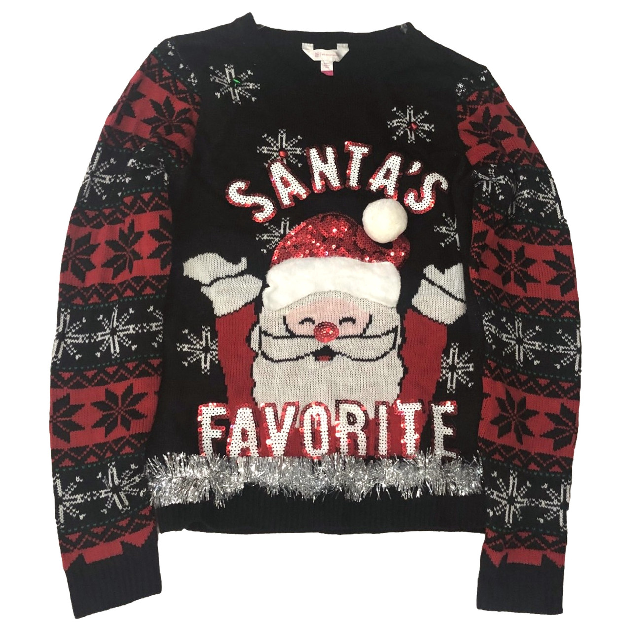- Junior Womens Bedazzled Santa's Favorite Christmas Holiday Sweater Large
