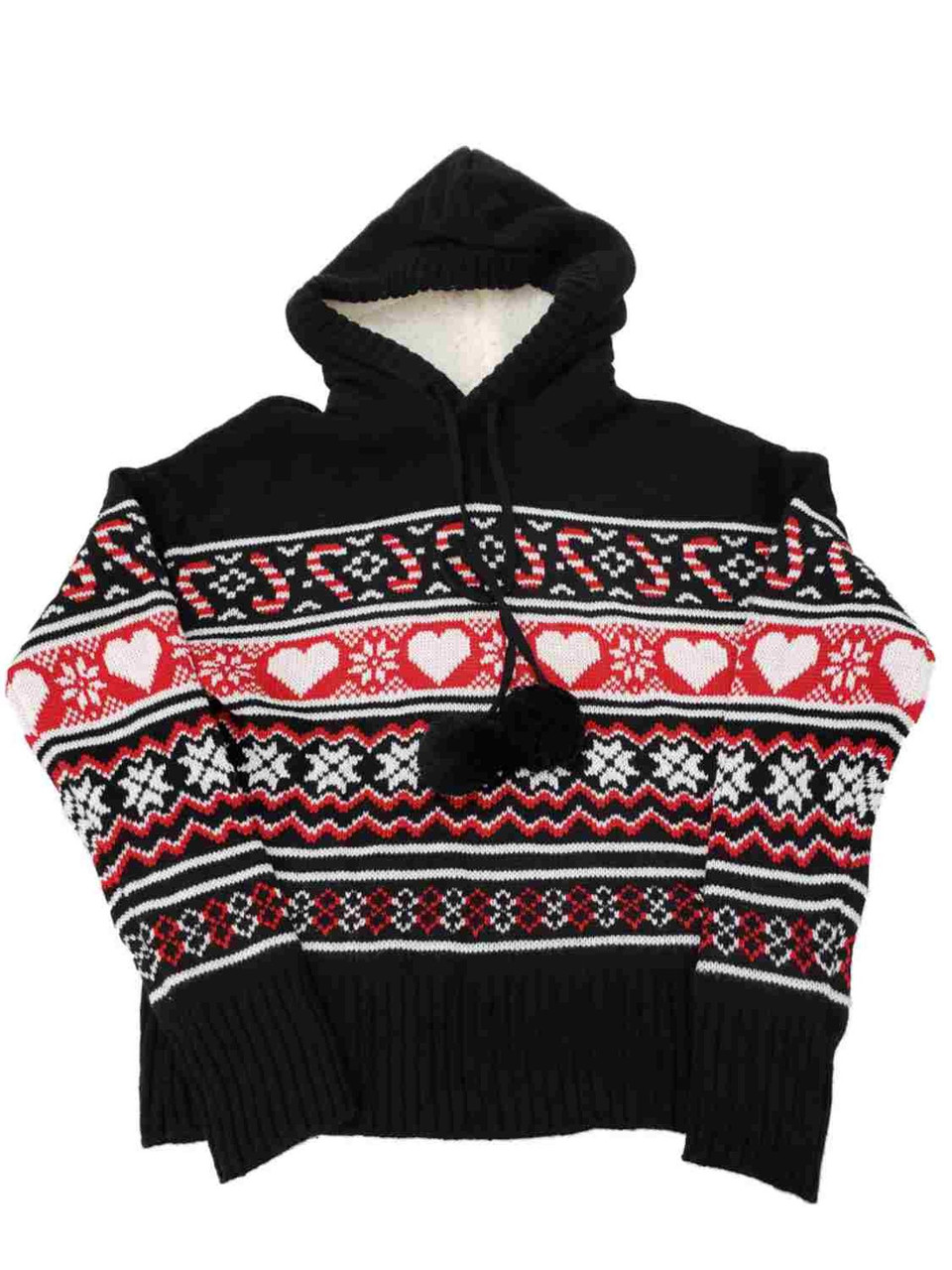 - Junior Womens Black Red White Hearts Candy Sherpa Hoodie Sweater Top Shirt