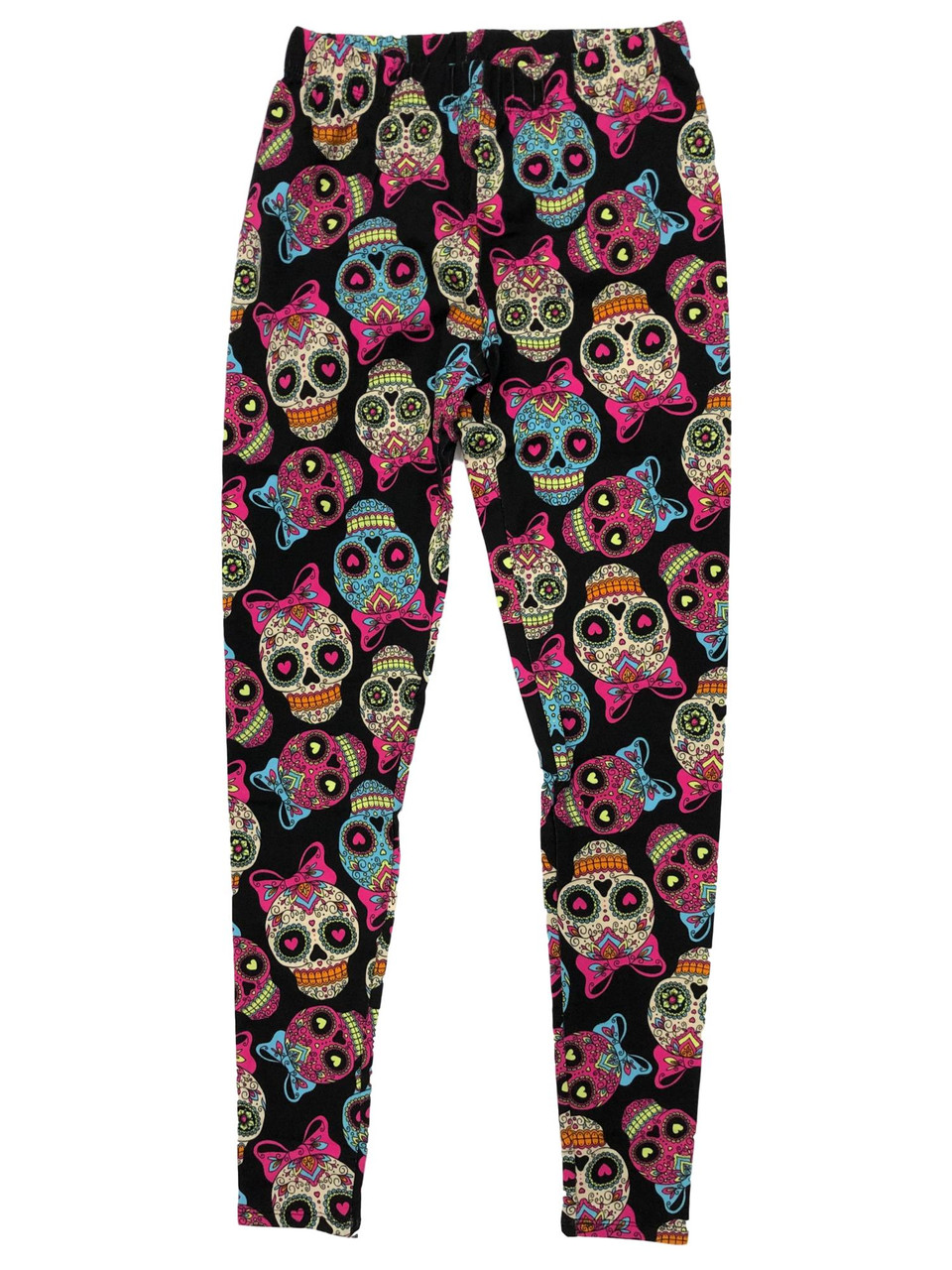 - Junior Womens Black Sugar Skull Halloween Leggings Day of Dead Pants