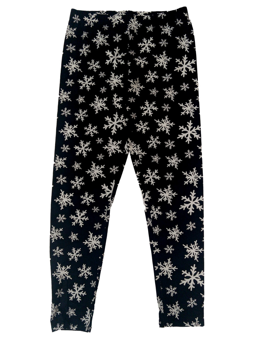 - Junior Womens Black & White Snowflake Holiday Leggings Stretch Pants