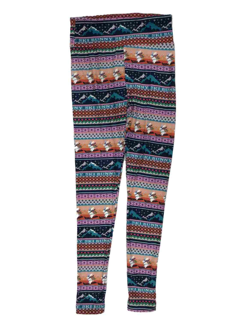 You will love wearing these super soft high rise "Ski bunny" themed stretch fit holiday leggings!