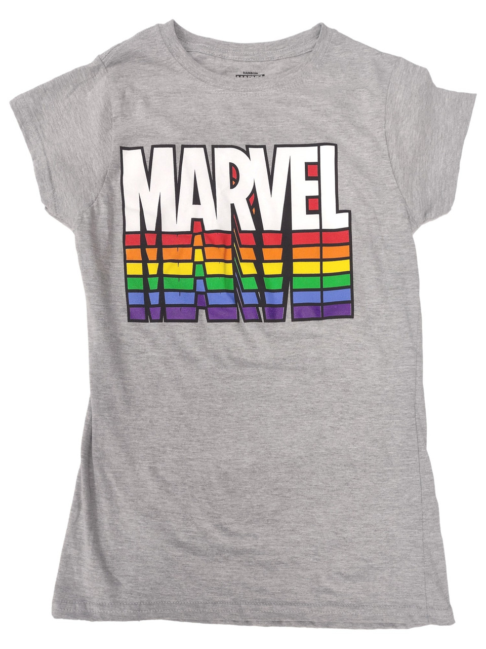 - Junior Womens Gray Rainbow Marvel Tee Shirt T-shirt