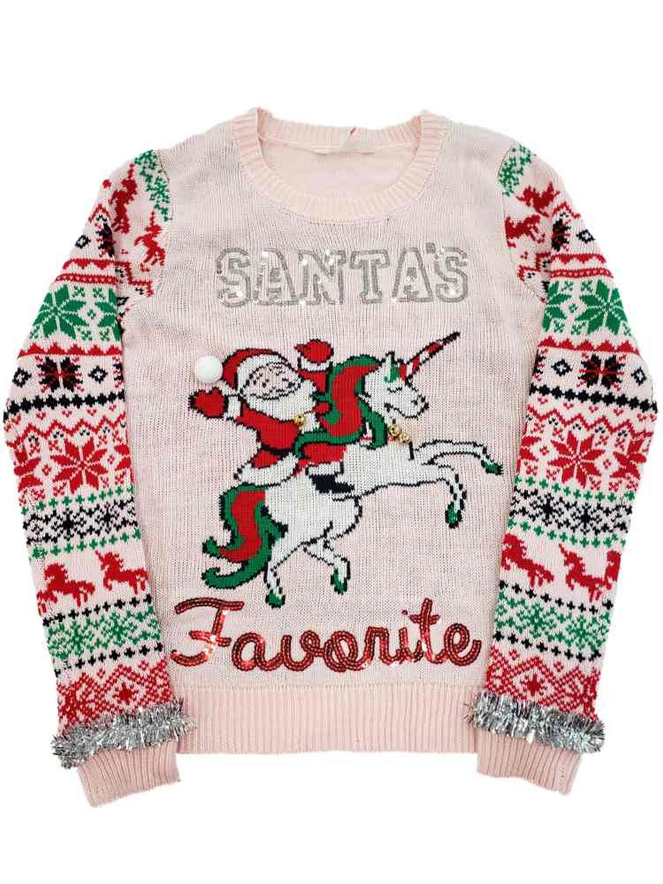 - Junior Womens Light Pink Santa's Favorite Sequin Christmas Holiday Sweater