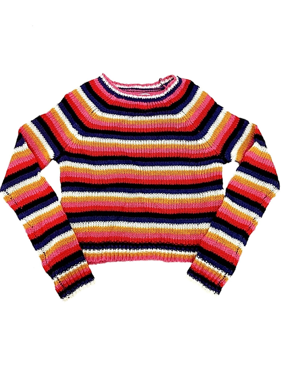 This junior womens cozy pink combo striped knit sweater is sure to be a favorite!