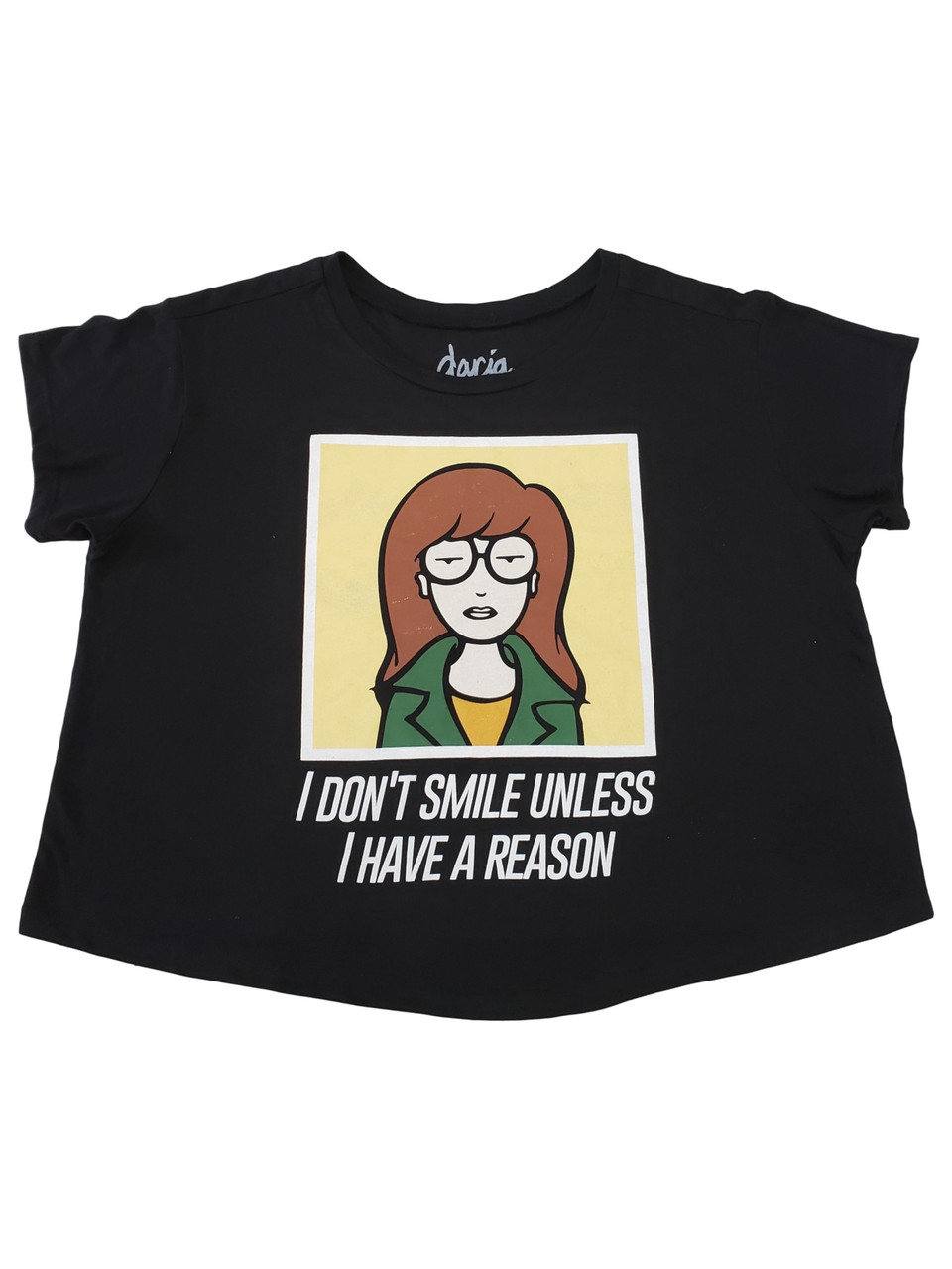 - Junior Womens Plus I Don't Smile Unless... Daria Short Sleeve Crop T-Shirt