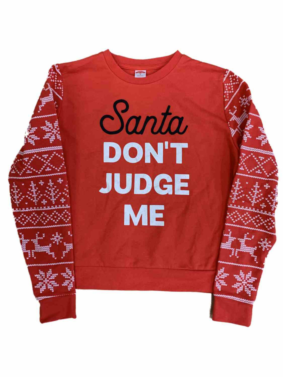 - Junior Womens Red "Santa Don't Judge Me" Christmas Holiday Sweatshirt