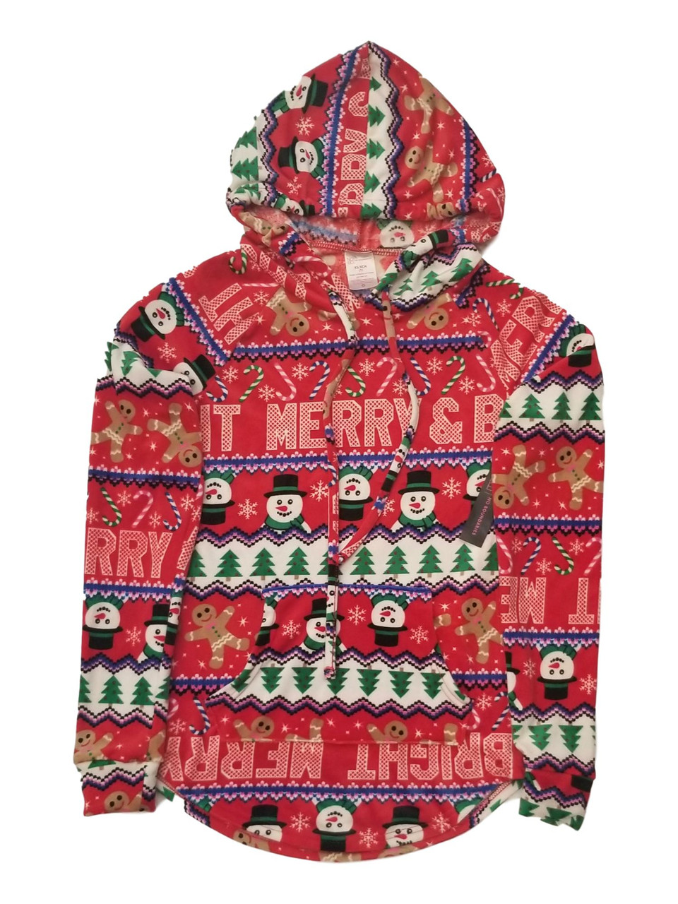 - Junior Womens Red Velvet Snowman & Gingerbread Christmas Hoodie Sweatshirt