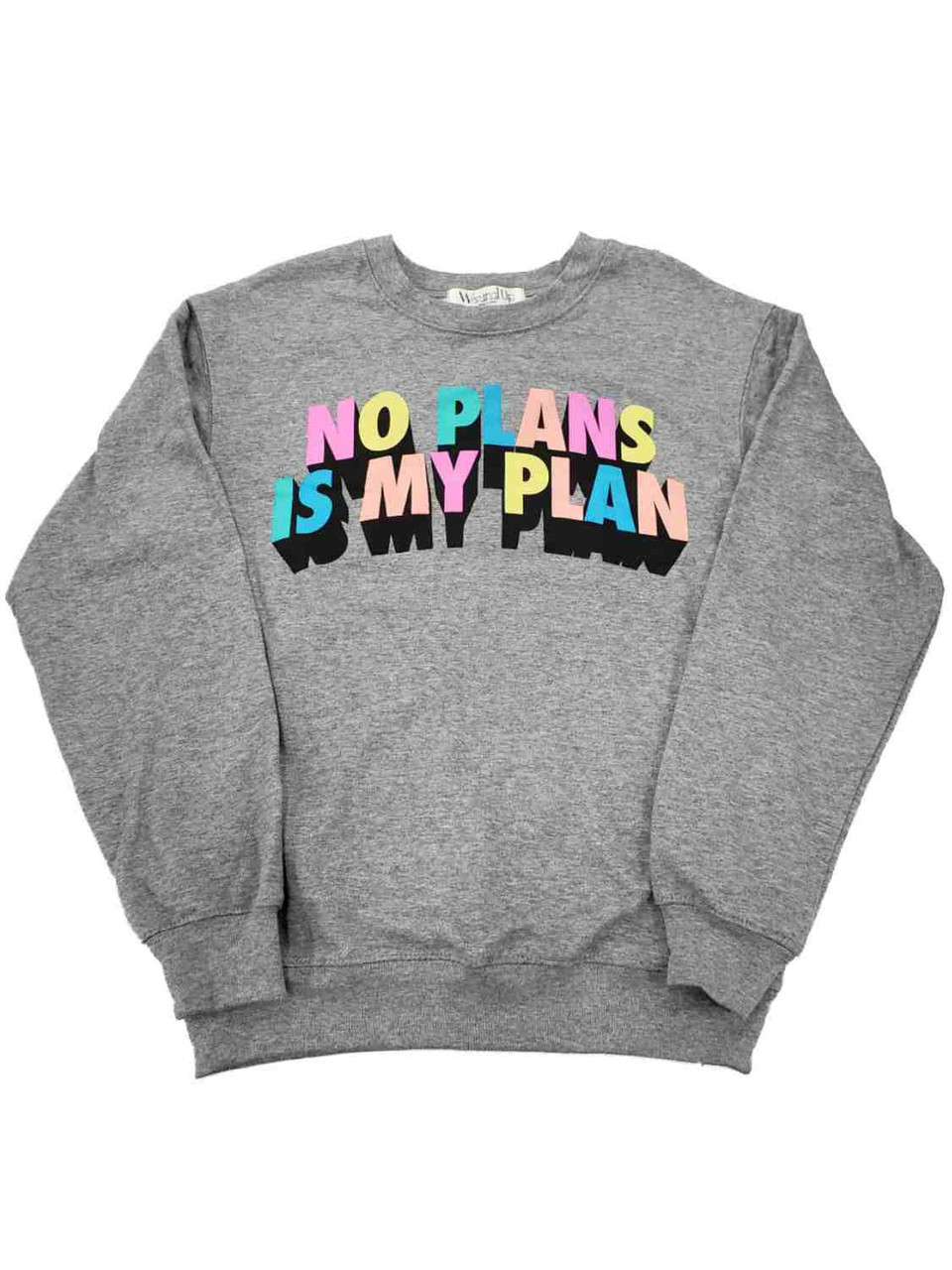 - Junior Womens Size Grey No Plans Is My Plan Rainbow Shirt Sweatshirt Top