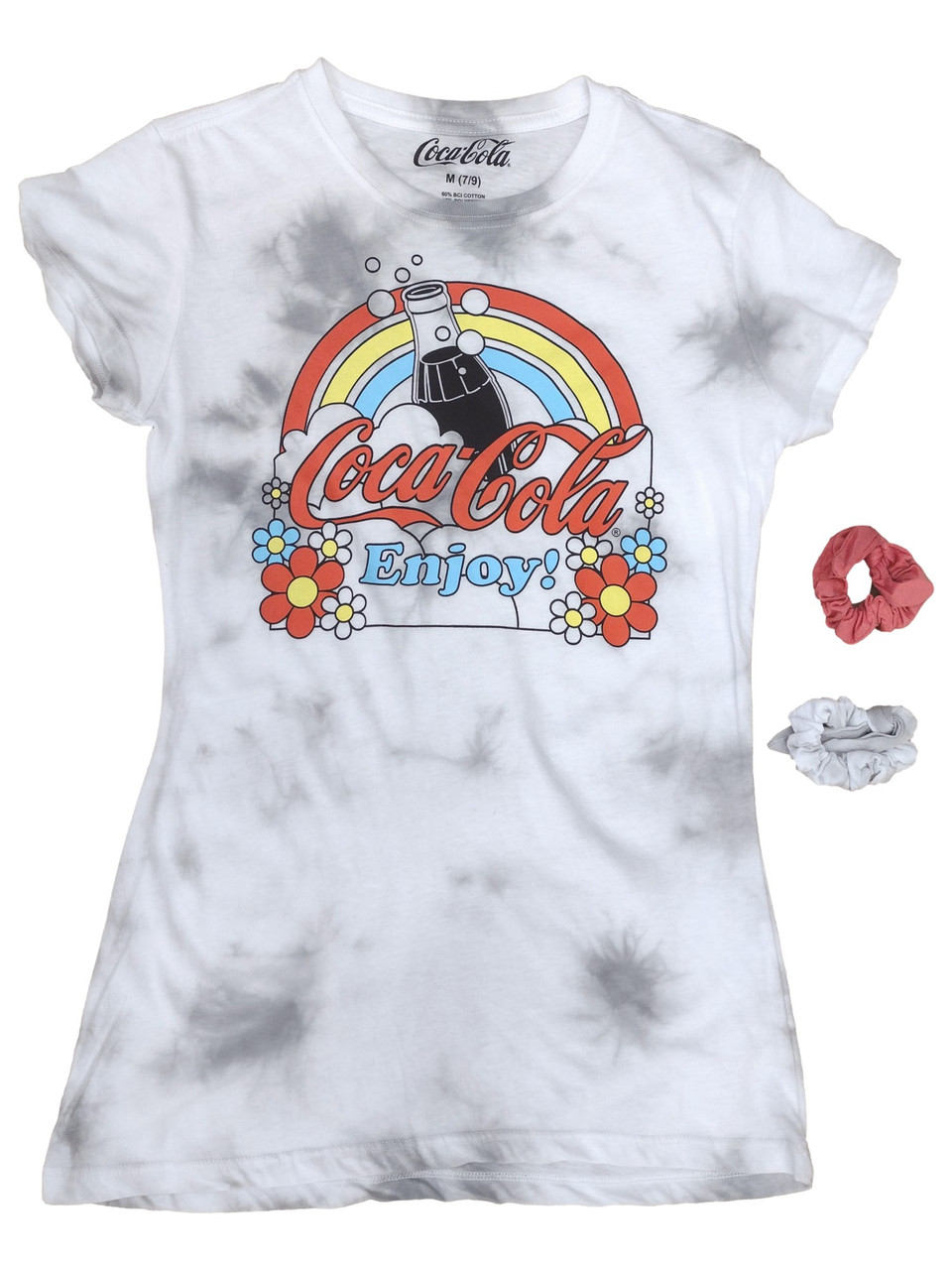 - Junior Womens White & Gray Tie dye Coca Cola Enjoy Tee Shirt T-shirt