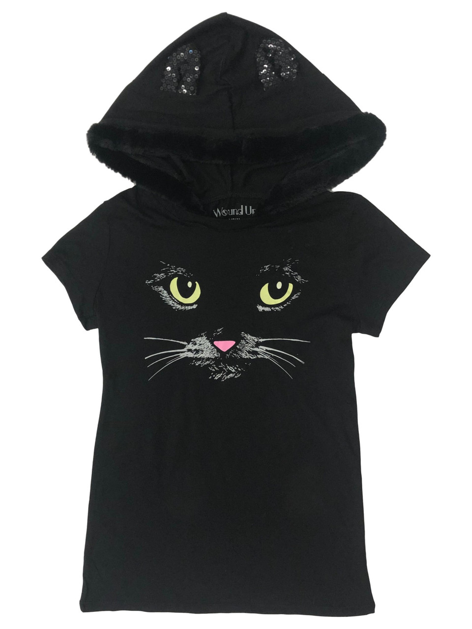 - Juniors Womens Black Kitty Cat Hoodie T-Shirt Costume Tee Shirt