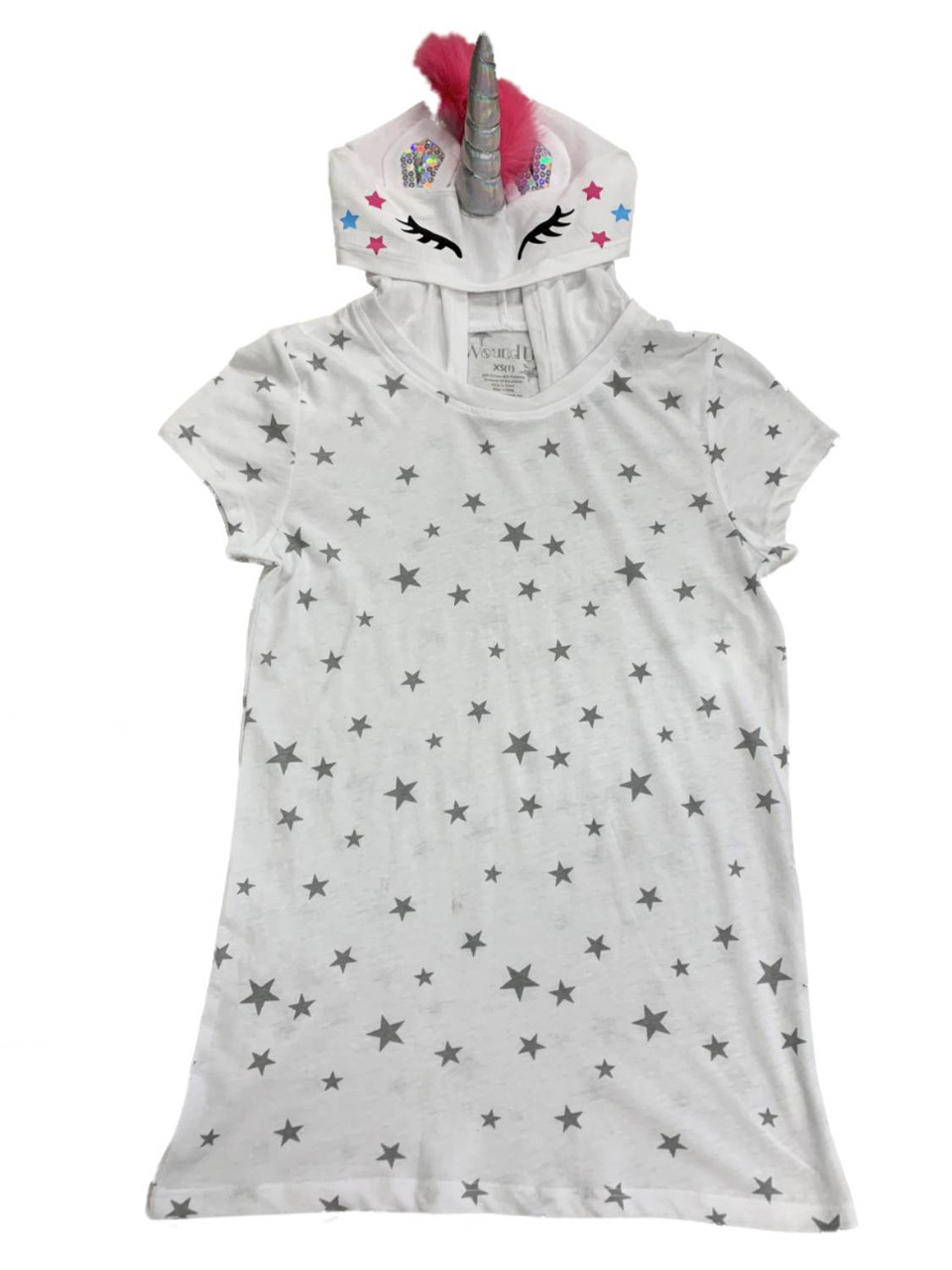 - Juniors Womens White & Gray Stars Unicorn T-Shirt Hoodie Costume Tee Top