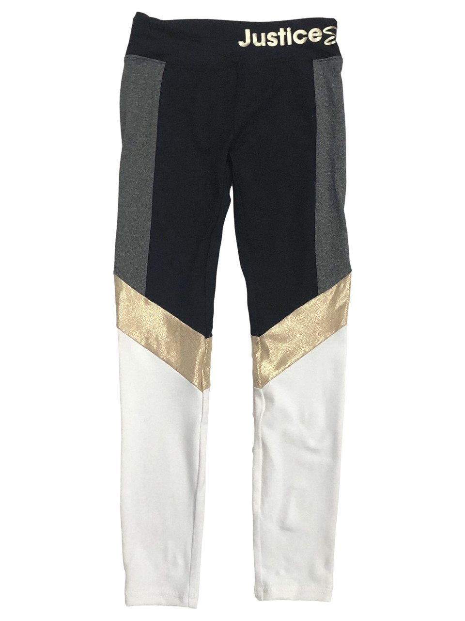 - Justice Girls Black White & Gold Full Length Leggings Athletic Pants