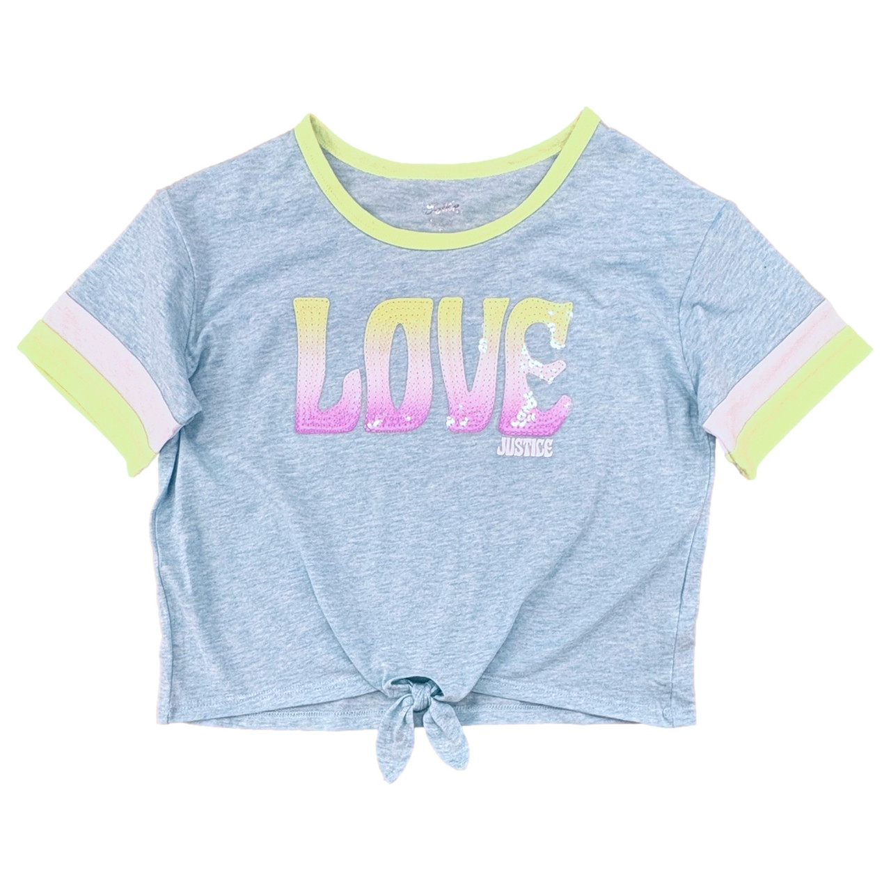 - Justice Girls Blue Front Tie Sequin Logo Short Sleeve Baseball T-Shirt S 7/8