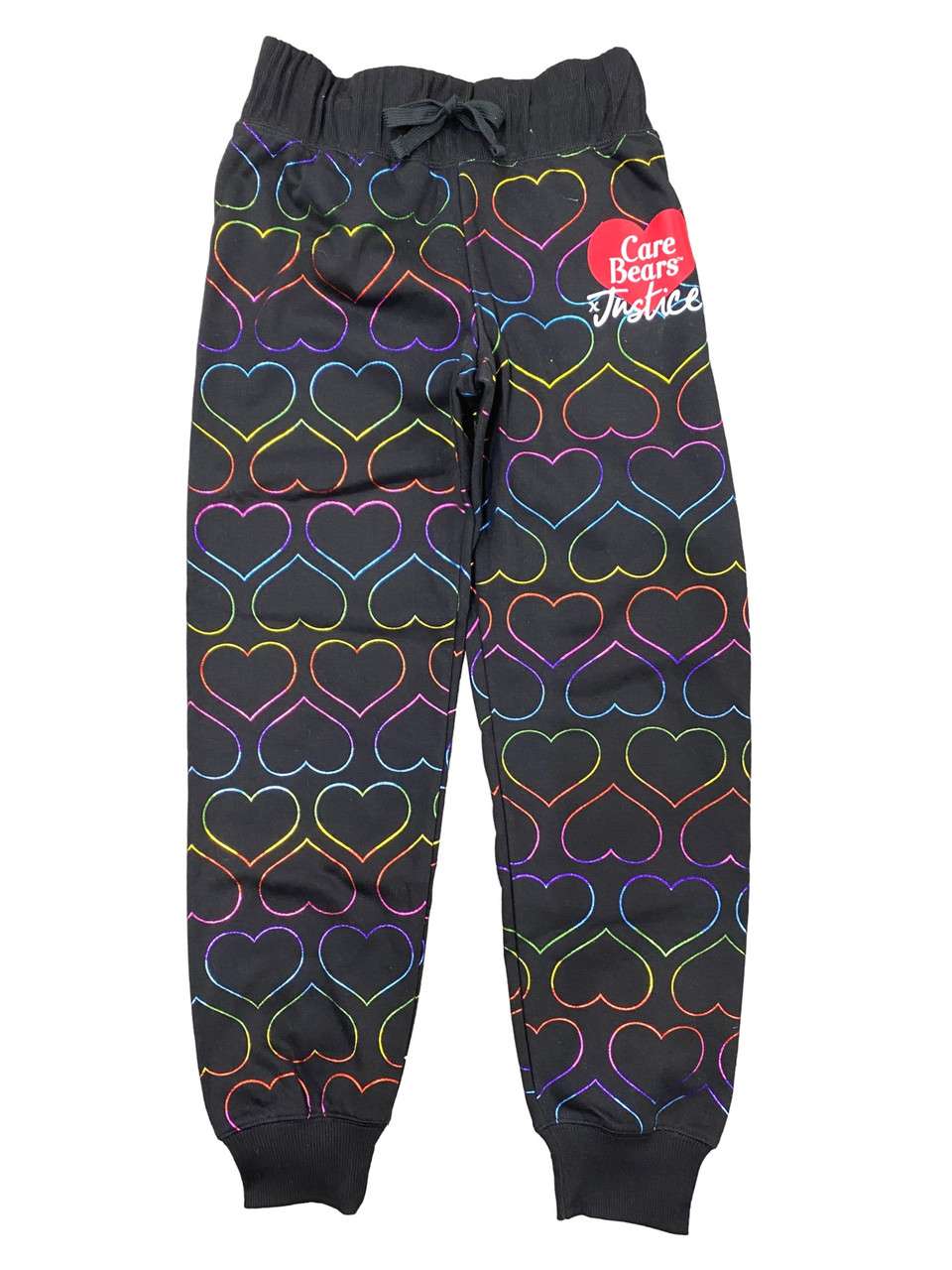 - Justice Girls Care Bears Foil Heart Joggers Black Fleece Sweatpants Sweats